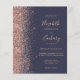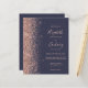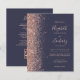 The left-hand edge of this elegant modern wedding invitation features a rose gold faux glitter border. The customisable text combines pale rose gold blush-coloured handwriting, copperplate and italic fonts on a dark blue background. The reverse side provides space for wedding details on a solid dark blue background, along with a QR code guests can scan to visit your website and RSVP, which saves the cost of printing and mailing separate RSVP cards. NOTE: Envelopes are not automatically included with these budget invitations, so please remember to choose the "white envelopes" option!