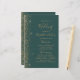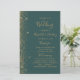 This elegant, modern wedding program features a dark green background edged with gold faux glitter. The text appears in elegant gold-colored handwriting and copperplate fonts.