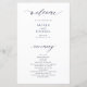 Modern simple minimalist typography trendy clean white ceremony and party BUDGET affordable wedding program template featuring a chic trendy dark midnight navy blue calligraphy script. ++++++++++++ Easy to personalise with your custom text on both sides!