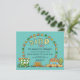 A budget price SMALLER 4.5” x 5.6” alternative. Available in a SEMI-GLOSS 110 lb CARD STOCK which is the default option (thicker for invitations), OR a SATIN FINISH 80 lb THINNER PAPER STOCK (ideal for enclosures). Envelopes are an optional extra and are slightly larger than the card size. Perfect for your little boy's birthday party If he loves his dinosaurs and cars! This invite has three cool cartoon Dino Cars and a tree with a semi circle of orange and green patterned flags around the typography. Easily personalise the text to your own details, and you can also change the background colours on the front and back to colours of your choice if you so wish via the Click to Customise further option.
