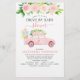 Budget Drive by Baby Shower Watercolor for a Spring Wedding Baby Girl or Boy Shower Invitations on white background - includes beautiful and elegant script typography with modern botanical Flowers, Car, Balloons, leaves and greenery for the special Mother to Be celebration.