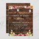 Budget Rustic Country Outdoors on Dark Wood with Burgundy, Orange and Yellow Sunflowers with Mason Jars on String Light Autumn or Fall Drive By Baby Shower Invitations - includes beautiful and elegant script typography for the special Mother to Be celebration.