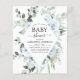 Budget Dusty Blue Floral Roses and Eucalyptus Botanical Greenery Watercolor Spring or Summer Baby Shower Invitations - includes beautiful and elegant script typography with modern botanical flowers and greenery for the special Mother to Be celebration for a Baby Boy or Baby Girl new arrival.