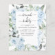 Budget Dusty Blue Floral Roses and Eucalyptus Botanical Greenery Watercolor Spring or Summer Wedding Brunch and Bubbly Champagne Bridal Shower Invitations - includes beautiful and elegant script typography with modern tropical botanical flowers and greenery for the special Bride to Be celebration.