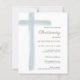 Budget Simple Dusty Blue Cross Boy Christening Baptism Invitation