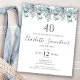 Budget Dusty Blue Floral 40th Birthday Invitation