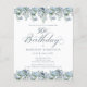 Dusty blue flowers create top and bottom borders on this elegant birthday invitation. Classic script calligraphy adds a beautiful touch. This item is party of the Dusty Blue floral collection.