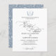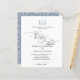 Design highlights a timeless elegance. A simple plain background to emphasize the romantic flourish calligraphy and floral crest monogram throughout the designs in front of the suite. The back designed with line art floral sketch pattern with dusty blue background.