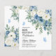 Budget Dusty Blue Flowers 80th Birthday invitation