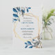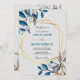 An elegant wedding invitation featuring dusty blue and grey branches,