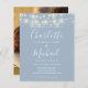Featuring pretty string lights and your photo and signature style names, this elegant budget dusty blue wedding invitation can be personalised with your information in chic lettering. Designed by Thisisnotme©