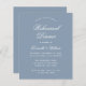 A simple rehearsal dinner invitation with a modern colour: dusty blue. It has just white text on dusty blue background. The words "Rehearsal Dinner" and the name are written in an elegant calligraphic script.