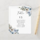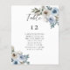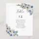 Elegant dusty blue floral wedding table number and seating chart with guest list