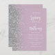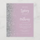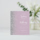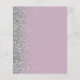The left-hand edge of this elegant modern wedding invitation features a silver faux glitter border. The customisable text combines white calligraphy script and sans serif font on a dusty lilac background. The reverse side features a matching dusty lilac and silver design.
