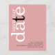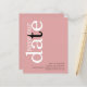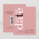 Budget Dusty Rose Pink QR Code Text Save The Date. A budget price SMALLER 4.5” x 5.6” alternative. Available in a SEMI-GLOSS 110 lb CARD STOCK which is the default option (thicker for invitations), OR a SATIN FINISH 80 lb THINNER PAPER STOCK (ideal for enclosures). Add your QR code to your wedding website on the back by replacing the QR code on the sample. You can create QR codes for free online. Simply search “QR code creator” and lots of options come up to create for free. A modern stylish typographical design to invite your family and friends to save your date, with Save Our Date in large typography rotated and to the left hand side at the top in white, with a black letter "t" on a background of pale dusty rose pink. Easily personalise the rest of the text.