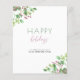 Modern trendy minimalist pink green winter holiday business corporate custom text BUDGET greeting card template featuring Happy Holidays typography script lettering and botanical greenery with seasonal red berries. ++++++++++ Personalise it with your text and signature on both sides to send your greetings and thanks to your business partners and customers! ++++++++++++++++++++++++ PLEASE READ THIS BEFORE PURCHASING! This is a budget affordable card printed on a paper sheet (each sheet has one card). ++++ For the best rapport price quality, our advice is to choose the Semi-Gloss paper type (it is thick enough to be used for stationery) ++++ If you need envelopes, choose the ENVELOPE OPTION. +++ Double-check all the information and spelling of your text because you will receive exactly what you see - no one else will check anything before printing. ++++ This card is designed for size 4.5" x 5.6". In the case you choose another size of the card and text goes outside page, everything needs to be fixed before adding the product to cart. Please ask Live Design Service for help.