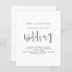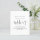 Elegant Calligraphy Wedding Invitation. A budget price SMALLER 4.5” x 5.6” alternative. Available in a SEMI-GLOSS 110 lb CARD STOCK which is the default option (thicker for invitations), OR a SATIN FINISH 80 lb THINNER PAPER STOCK (ideal for enclosures). Envelopes are an optional extra and are slightly larger than the card size. A stylish set script for Wedding and the rest of the text you can easily personalise.