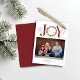 Budget Elegant Christmas Joy to the World Wreath Holiday Photo Card featuring your custom photo and text with our modern holiday wreath and a wonderful Christmas carol! Easy to customise with your own text, fonts, and colours. **Our BUDGET paper is smaller, lighter, and more delicate, but still beautiful! Don't forget the envelopes!** If you need assistance or matching items, please contact us at cedarandstring@gmail.com.
