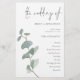 Budget Elegant Eucalyptus Script Wedding Program. Size 5.5” x 8.5” at a budget price,. Artsy watercolor eucalyptus leaves are on each side. The main header is in a stylish set script and the rest of the text you can easily personalize. If you need any assistance with your editing of this design, please message me.