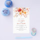 This elegant floral budget invitation flyer is the perfect choice for couples seeking a professional fall wedding design at an affordable price. A vibrant watercolor bouquet of flowers, leaves, and berries in rich sunset hues of deep orange, peach, and taupe creates a rustic yet refined aesthetic, ideal for an autumn celebration. Paired with classic serif typography on a clean white background, the warm palette brings a natural sophistication and timeless boho-rustic charm to your special day.