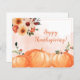 Send warm holiday wishes with this elegant floral Thanksgiving card. Featuring watercolor pumpkins and fall blooms in soft rustic tones, this design is perfect for sending holiday greetings to your customers. Easily personalise the text with just a few clicks.