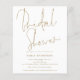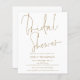 A value for money BUDGET alternative on a smaller size 4.5 x 5.6” semi-gloss 110lbs weight, which is of similar thickness to a postcard (however is not suitable to use as a postcard.). PLEASE NOTE there is ONE invite per sheet. Budget Elegant Gold Script Bridal Shower Invitation. This modern design for your Bridal Shower Invitees has set elegant script for Bridal Shower at the top and easily personalise with your details beneath. Shown in classic gold and white, altough you can also change text and background colours on either side if you wish via the Customise Further option.