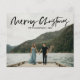 Modern and simple christmas photo card featuring a BLACK elegant handwritten script on the front and a space for personal message on the back.