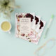 This is a budget but elegant and glamourous Brunch & Bubbly bridal shower invitation printed on a flyer to celebrate the bride-to-be! Using a design of modern and chic pink and burgundy florals and gold accents and a flute of pink champagne, edit all of the text as required using the provided template and celebrate the bride’s upcoming nuptials in elegant style.