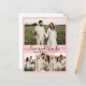 Budget, Modern, Elegant, Hand Lettered Wedding Four (4) Photo Collage Thank You Card in pink. Stylish wedding thank you card template featuring 4 photo on the front and one photo on the back. With the text "Love and thanks" in a swirly hand lettered typography script swash-tail font in black colour on pastel blush pink background. Personalise the custom name and thank you message. Little heart between the names. If you prefer to handwrite your note, just delete the sample text. If You need help or matching item, please contact to me!