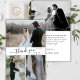 Budget, Modern, Elegant, Minimalist Hand Lettered Wedding Photo Collage Thank You personalised affordable low budget flyer. Stylish wedding thank you paper template featuring three (3) photo on the front and one (1) photo on the back side. With the text "thank you" in a swirly hand lettered typography script font in black on white background. At the backing one horizontal photo and your thank you message template. ***PLEASE NOTE! *** BUDGET PAPER/FLYER IS PAPER THIN. NO ENVELOPES INCLUDED.*** UPGRADE THE PAPER FOR A THICKER PAPER. ***
