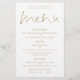 Budget Elegant Script Black White Wedding Menu. A budget price size 5.5” x 8.5”,. An elegant typographical design in gold and white, with a stylish set script for the header Menu. Easily personalise the rest of the text to your own details which includes alternatives for your vegan or vegetarian options. You can also change text styles and colours as well as the background colours via the customise further option if you wish.