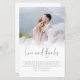 PLEASE NOTE there is ONE invite per sheet. Budget Photo QR Code Script Wedding Invitation. A LARGER size 5.5” x 8.5” at a budget price. PLEASE NOTE THE OPTIONAL ENVELOPES ARE A LITTLE BIGGER IN SIZE AT 6.75” x 9” approx. Budget Elegant Script Photo Wedding Love Thanks. Love and thanks is in a set handwritten style. Easily personalise the rest of the text to your own details and replace the sample photo on the front with your own.
