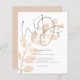 A budget price SMALLER 4.5” x 5.6” alternative. Available in a SEMI-GLOSS 110 lb CARD STOCK which is the default option (thicker for invitations), OR a SATIN FINISH 80 lb THINNER PAPER STOCK (ideal for enclosures). Envelopes are an optional extra and are slightly larger than the card size.   A tinted background of artsy peach leaves from top to bottom and artsy set script We Do taking centre stage at the top. Envelopes are an optional extra. The rest of the text you can easily personalise.