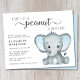 A cute and budget-friendly boy baby shower invitation that features "A Sweet Little Peanut Is On His Way" written in soft gray typography and a stylish script and a pastel blue watercolor of a baby boy elephant. Add the mother's name and shower details in simple modern gray typography.