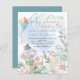 Budget Elephant Boy Baby Shower Picnic. A budget price SMALLER 4.5” x 5.6” alternative. Available in a SEMI-GLOSS 110 lb CARD STOCK which is the default option (thicker for invitations), OR a SATIN FINISH 80 lb THINNER PAPER STOCK (ideal for enclosures). Envelopes are an optional extra and are slightly larger than the card size. Setting the scene for your picnic with this cute elephant with his basket, cup and cake, with beautiful florals and foliage and flying kite. The header Baby Shower is in a set elegant script and the rest of the text you can easily personalise. A coordinating turquoise background is on the back.