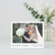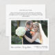 Budget-friendly Modern elopement or smaller wedding announcement to let family and friends know that your wedding plans changed, requiring you to elope or reduce the number of guests at your wedding to a small intimate group, but that you will host a celebration party in the future. The front features your photo, "Married Now, Party Later" in a handwritten-like script and your first names and wedding date. On the reverse you can personalise your message in more detail and add your married names signature.