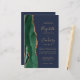 The left-hand edge of this elegant modern wedding invitation features an emerald green watercolor agate border trimmed with faux gold glitter. The customisable text combines gold-coloured handwriting, copperplate and italic fonts on a navy blue background. Add additional details on the back, along with a QR code to help your guests visit your wedding website.