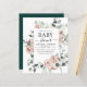 Budget Dusty Pink, Dusty Rose, Emerald Green, Sage Green Floral Roses and Eucalyptus Botanical Greenery Watercolor Spring or Summer Baby Shower Invitations - includes beautiful and elegant script typography with modern botanical flowers and greenery for the special Mother to Be celebration for a Baby Boy or Baby Girl new arrival.