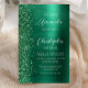 The left-hand edge of this elegant modern wedding invitation features an emerald green faux glitter border. The customisable text combines white handwriting and sans serif fonts on a green faux brushed metal background. The reverse side features a matching green glitter and brushed metal design.
