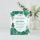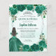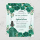 Emerald Green Silver Glitter Floral Princess Tiara Quinceañera Invitation