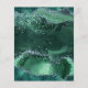 This design features an emerald green watercolor design in imitation of agate geodes trimmed with green faux foil and green and silver faux glitter. The text appears in white on a dark green arch shape, with the word "wedding" in decorative script. The back repeats the emerald green glitter agate design.