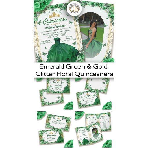 Capture the essence of your 15th birthday with an invitation that's as special as the milestone itself. Order our "Budget Emerald Green Gold Glitter Floral Quinceanera Invitation" today and begin the journey towards a celebration that will be remembered for years to come.