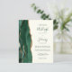 Save the cost of printing and mailing separate RSVP cards with this elegant modern all-in-one budget wedding invitation. The left-hand edge features an emerald green watercolor agate border trimmed with gold faux glitter. The customisable text combines green handwriting, copperplate and italic fonts on an ivory background. The reverse side provides space for wedding details on a solid ivory background, along with a QR code guests can scan to visit your website and RSVP.