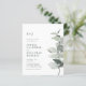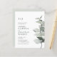 Budget All in One with QR Code Elegant Watercolor Eucalyptus Wedding Invitation... Our UPDATED affordable double-sided botanical wedding invitation features an elegant watercolor eucalyptus branch in rustic sage and dusty green shades setting off the invitation text beside it. The light sage green back of the invitation contains all of the details you would typically see on separate cards within the wedding packet. This modern style all-in-one wedding invitation was designed to be both elegant and budget conscious... not to mention time-saving. Included on the back is a QR code graphic template you can REPLACE instantly with YOUR OWN CODE by entering your wedding website URL right on the personalisation template. All example text can be easily revised with your own information on the same template. PLEASE NOTE: "Budget" card paper is not quite the same as the traditional flat card invitations. Our budget cards are 4.5 x 5.6 inches made of semi-gloss 110 lb paper compared to traditional wedding invitation flat cards at 5 x 7 inches in matte paper at 120 lb weight. Also, the budget cards do not automatically come with envelopes, as do the traditional invitation cards, but you can purchase them on the same page at checkout if you wish. This eucalyptus design is also available on a traditional 5x7 wedding invitation card as well as many other matching products.