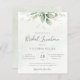 Beautiful bridal luncheon invitation featuring watercolor eucalyptus and gold leaves.