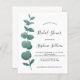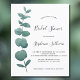 These simple elegant Bridal Shower Invitations are decorated with a single eucalyptus sprig and modern typography.