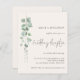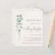 A value for money BUDGET alternative on a smaller size 4.5 x 5.6” semi-gloss 110lbs weight, which is of similar thickness to a postcard (however is not suitable to use as a postcard.). PLEASE NOTE there is ONE invite per sheet. Budget Sage Eucalyptus Cream Wedding Reception Invitation. Minimalist botanical style to invite your evening reception wedding guests. A set handwritten script for Wedding Reception and the rest of the text you can easily personalise with an ivory background on both sides. An elegant branch of sage watercolor eucalyptus leaves runs down the left hand side.
