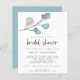 Eucalyptus Elegant Bridal Shower.A budget price SMALLER 4.5” x 5.6” alternative. Available in a SEMI-GLOSS 110 lb CARD STOCK which is the default option (thicker for invitations), OR a SATIN FINISH 80 lb THINNER PAPER STOCK (ideal for enclosures). Envelopes are an optional extra and are slightly larger than the card size. An artsy branch of pastel eucalyptus in soft teal and rose pink is at the top. Bridal Shower is set in a modern handwriting style and the other details beneath. Easily personalise the rest of the text to your own. A coordinating teal blue background is on the reverse.