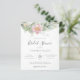 Beautiful bridal shower invitation featuring pink floral watercolor eucalyptus and gold leaves.