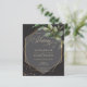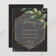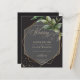 Budget Modern elegant eucalyptus greenery gold geometric frame on a contrasting black charcoal background, wedding invitation.